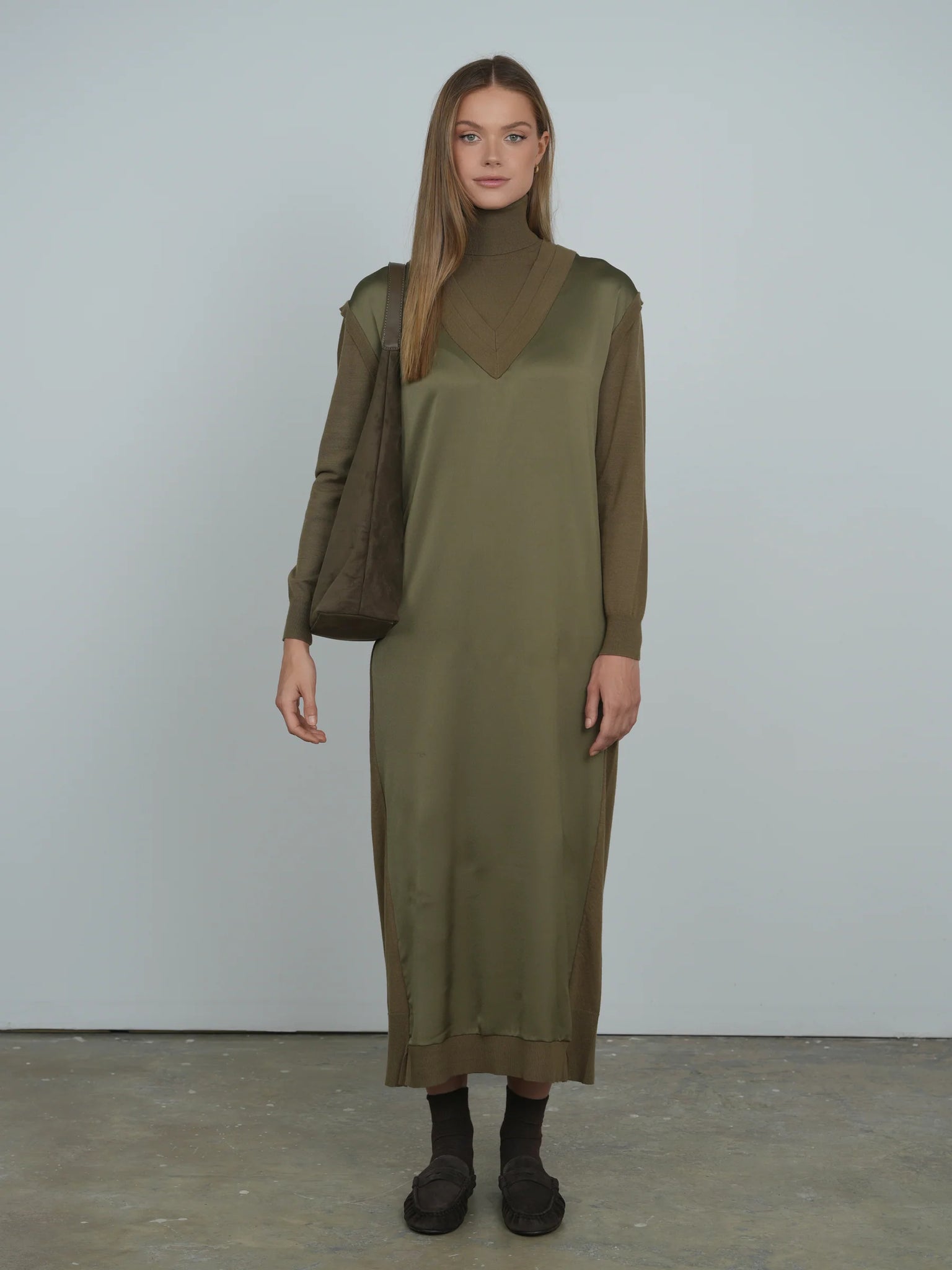 TG MIXED SATIN MAXI DRESS