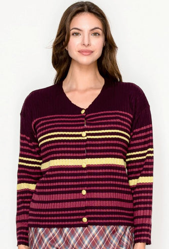 YAL STRIPE V NECK CARDI
